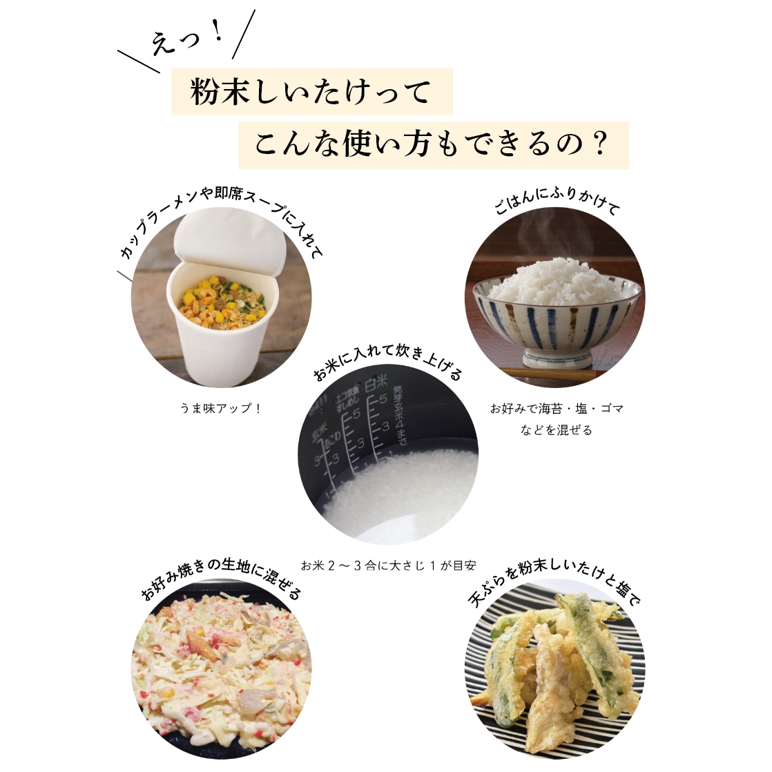 国産原木栽培の乾燥しいたけを粉末にしました。